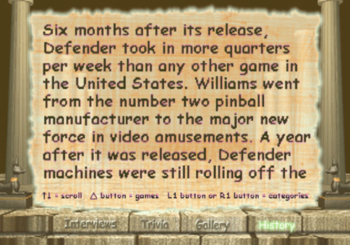 This game actually outdoes Namco (remember, the originators of the arcade compilation) by including not just a much larger variety of games, but also...a museum! Yes, while they're not amazing quality visually, and not every game has the same breadth of content, there are actual developer interviews on video, written histories, production art, and sell sheets for each game, things Namco stopped including in their comps by the 2000s. As such, Midway Arcade Treasures isn't just great to play, it's also a neat look into arcade history—provided you can tolerable the use of Comic Sans for all the menus. (Why?)