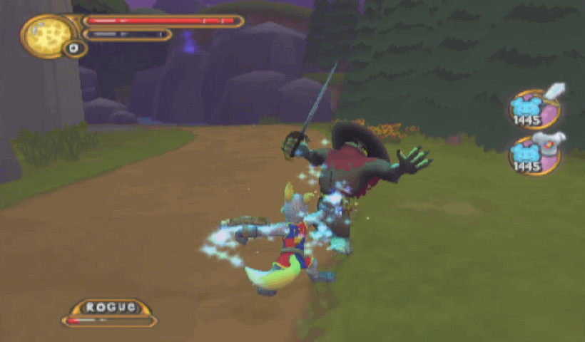 The game builds at a leisurely pace, as Tor is tasked with running back and forth between the farm and Meridell to get all his knight paperwork in order and save his sister from a spooky cave. Truth be told, this is actually the best part of the game. Tor's an athletic fellow, and while the combat and platforming aren't amazing, the mechanics pair nicely with the cute, bright graphics and whimsical, frolicking tone of the game. (Roberta's magic, on the other hand, kinda sucks, but the parts where you're forced to play as her are thankfully few.) There's plenty of random, colorful mooks of every Neopets species to talk to, even lorebooks to read, and the mote system for bestowing your gear with elemental power is neat, if thoroughly underutilized.